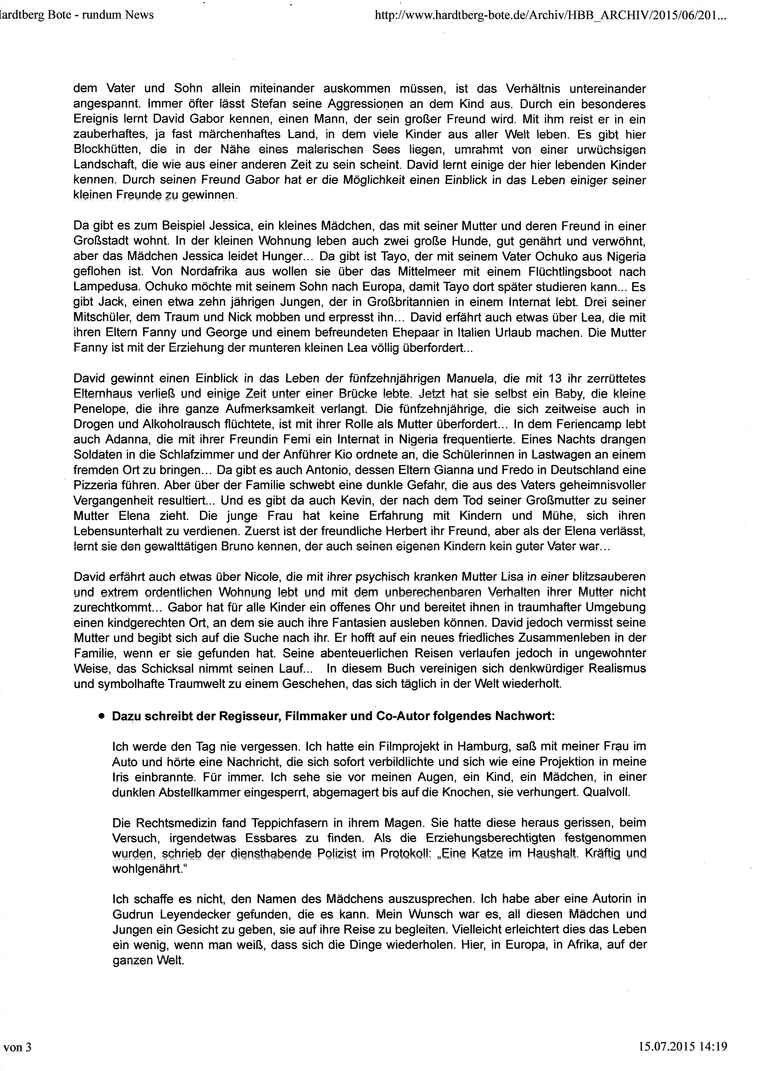 Ein paar Monate später sah ich sie dann auf Fotos und in Filmen: Die Bilder des Krieges, die Bilder der Verbrechen, die Bilder der Juden – Vernichtung. Dem ersten Schock folgen die Fragen. Warum ? Warum lassen Menschen immer wieder Krieg zu? Es gibt doch mehr Menschen, die in Frieden leben wollen. Haben sie keine Macht? Warum lassen Menschen Verbrechen zu? Warum lassen Menschen Böses zu? Viele Fragen – wenig Antworten. Mein Traum vom Frieden deckte sich mit dem meiner Freunde. Wir wollten es allen erzählen: die Menschen können auch friedlich miteinander leben. Die ganze Welt sah es, unsere Blumen, unsere Musik, wir würden sie schon alle überzeugen! Es würde keine Feinde mehr geben und keinen Rassismus, keine Kriegsverbrechen, kein Holocaust. Wo war Tante Lina aus Berlin? War sie in den Trümmern gestorben, hatte man sie deportiert, gequält, ermordet? Fragen, Suchaktionen, keine Antwort. ........... Wir wollen aus der Vergangenheit lernen, wir wollen ein anderes Weltbild prägen, in dem jeder Platz hat, jeder in seiner Art, jeder mit seiner Hautfarbe, seiner Konfession, seiner Denkweise. Das ist nicht schwer, wir haben ja die Fehler der Vergangenheit frisch und abschreckend vor Augen, das kann man alles nicht vergessen. Das darf man nicht vergessen!